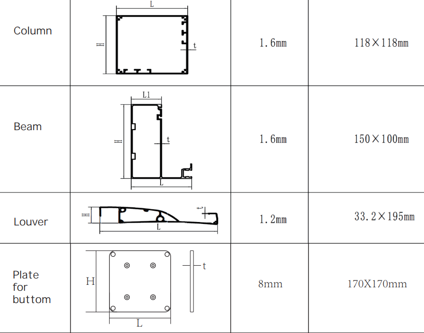 Lamelele din aluminiu sunt pliabile și accesorizate cu canal de scurgere, iar în momentul extinderii acesteia se creează un efect de etanșeitate, acoperind întreaga terasă. Rezistența sa permite un debit de apă de până la 15L/minut și 50 kg/ lamela în cazul zăpezii, recomandându-se să păstrați lamelele în poziția deschis pe timpul unei zăpezi puternice.